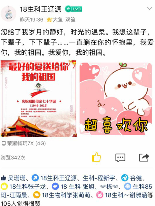 “最好的爱送给你,我的祖国。”5月20日至22日,红色的海报在QQ空间里不断传递、“刷屏”,这是生命科学学院师生举办的一场别开生面的“线上表白祖国送祝福”活动。