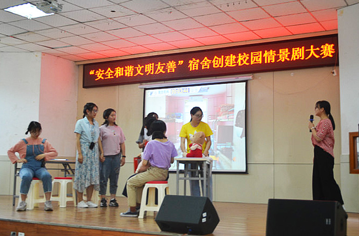 本次大赛围绕“安全和谐文明友善”这一主题,面向全校学生征集原创校园情景剧作品,最终11个作品参加比赛。学子围绕创建“安全和谐文明友善”宿舍过程中发生的事,通过情景剧的形式,演绎了大学生人际交往中心理冲突产生、发展、调整和解决的完整过程,融合了亲情、友情与爱情,演员们饱含激情而又各具特色的表演也引发了在场同学们的共鸣和思考。