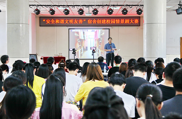 5月22日下午,“安全和谐文明友善”宿舍创建校园情景剧大赛在我校青年之家举行。校党委副书记刘群英出席开幕式并讲话。