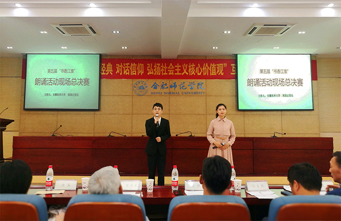 6月14日下午,由安徽省高校图工委主办的书香江淮第五届“品读经典对话信仰 弘扬社会主义核心价值观”互联网读书征文颁奖仪式在合肥师范学院图书馆举行。我校师生在书香江淮读书创作活动中收获颇丰,校图书馆连续五届获颁特别贡献单位。