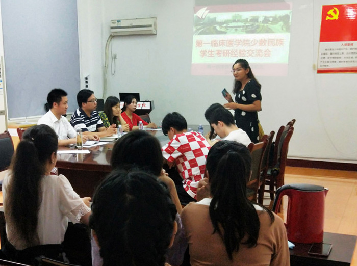6月27日下午,第一临床医学院举办了以“传承学院文化、营造优良学风”为主题的少数民族学生考研经验交流会。该院党委副书记、学生党总支书记李琮出席交流会。