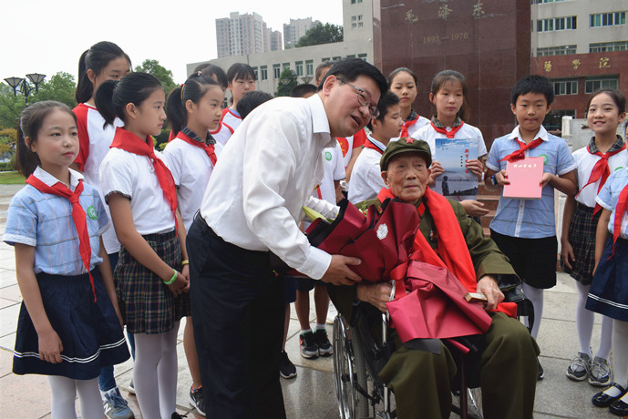 9月17日清晨,校党委书记顾家山赶到校文化广场,看望慰问正在给附小少先队员讲革命故事的我校革命老前辈、离休老干部徐亚球同志,向为新中国成立、学校建设发展做出贡献的老同志致以崇高的敬意,向参与此次活动的师生表示慰问。