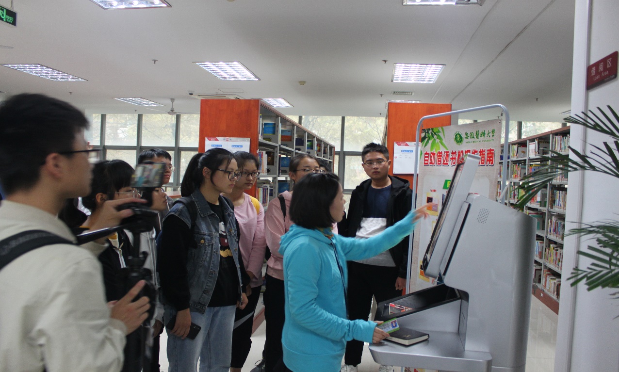 现场参观印象深刻。10月10日至12日,该馆组织3场现场参观活动,并通过QQ平台进行了现场直播,扩大受众范围。该馆7位老师分别就馆内期刊基本库及各阅览室的基本情况作介绍,并结合学生使用过程中经常出现的错误,进行针对性讲解。参观过程中,同学们更加直观地了解了图书馆的馆藏布局和图书借还流程,并对查找图书、借阅图书以及使用电子资源过程的注意事项有了更具体的了解。该馆志愿服务队的同学为大家讲解了爱心书屋和存包柜的使用方法。