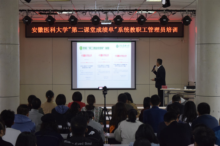 贾伟华结合“第二课堂成绩单”制度实施的背景,详细介绍了我校该制度的指导思想和基本原则,解读了六大模块,三项学分的具体内容。“第二课堂”系统运营负责人讲解了“第二课堂”平台的运行机制和操作原理,现场演示了“华体会平台智慧校园”“安医大青年之声”“易班”三个移动端入口,并通过管理员网页端对线上操作流程进行了详细的现场演示和指导。培训会结束后,在场师生就活动申请、审核流程、诚信机制等具体问题同“第二课堂”系统技术人员进行交流,现场气氛热烈。
