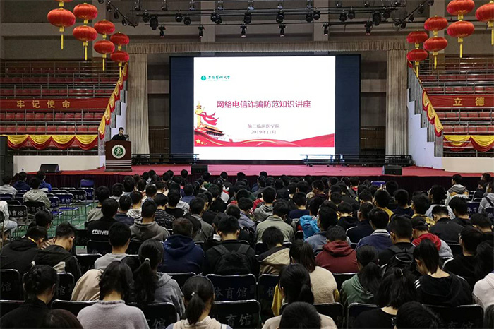 11月6日晚,第二临床医学院在校本部体育馆举办“电信网络诈骗防范知识”专题讲座,合肥市公安局蜀山分局三里庵派出所民警受邀到场亲授防骗宝典。