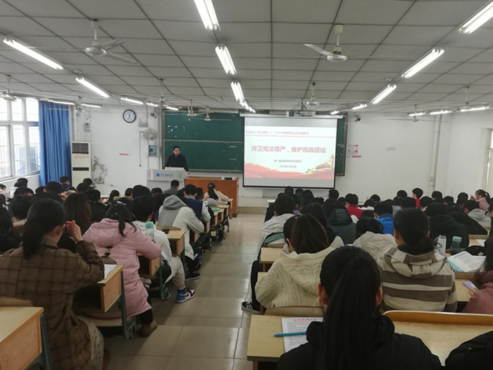 李琮指出,在全校上下深入开展“不忘初心 牢记使命”主题教育期间,学院组织开展此次主题教育,就是希望在师生中着力弘扬社会主义核心价值观和宪法精神,进一步明确新时代大学生为各民族团结奋斗共赴幸福路的初心和使命。他要求同学们谨记习近平总书记对青年学生的殷切期望和教导,从三个方面努力行动。一是要铸牢中华民族共同体意识,在中华文明的精神滋养下全院同学互亲互爱,像石榴籽一样紧紧地团结在一起。二是要大力弘扬爱国主义优良传统,做到爱国、爱党和爱社会主义,做中国梦的开拓者、奋进者和奉献者。三是要铭记奋斗是青春最亮丽的底色,时刻记牢肩负重要的历史使命,主动担当,用驰而不息的奋斗精神为党和国家的事业添砖加瓦。