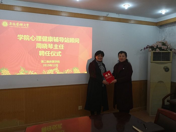 会上还聘任了周晓琴担任该院二级心理健康辅导站顾问。双方商定,今后该院辅导站将定期邀请专家指导辅导员开展案例讨论,以提高辅导员心理危机干预技能,更好地为学生提供心理服务,共同构建全员全过程全方位的育人体系。