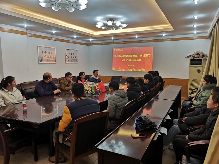 12月23日晚,第二临床医学院学生党总支举办“迎新年,庆祝澳门回归20周年”座谈会。该院20余名新疆学生和师生代表欢聚一堂,齐祝澳门好,共话爱国情。校学生处新疆内派老师参加座谈。