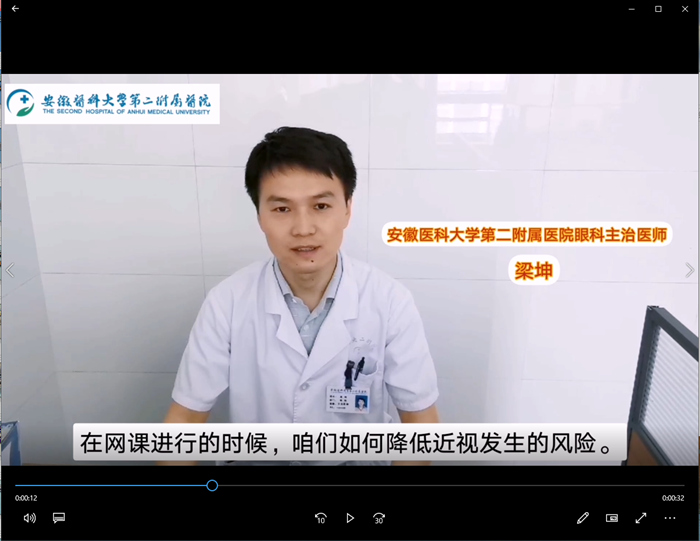 名师讲堂,珍“EYE”永恒。5月期间,该院发挥“院院合一”优势从第二附属医院眼科邀请多位专家,结合此次疫情防控期间同学们网上学习的现状,从如何延缓近视发展、线上学习期间如何选择电子产品、线上学习如何缓解眼疲劳、网课进行时“四个一”降低近视发生风险、准分子激光治疗近视等方面内容,为同学们录制了五个专属“护眼”小视频。6月3日下午,二附院眼科主任刘贺婷受邀从临床角度出发,讲解了眼视光专业未来的发展方向,并结合此次爱眼日主题,为同学们介绍了用眼知识、近视防控常见误区。此外,该院还通过“安医大第二临床医学院”公众号、QQ等平台,在线上开展广泛宣传,引导同学们学会科学用眼、护眼,将爱眼进行到底。