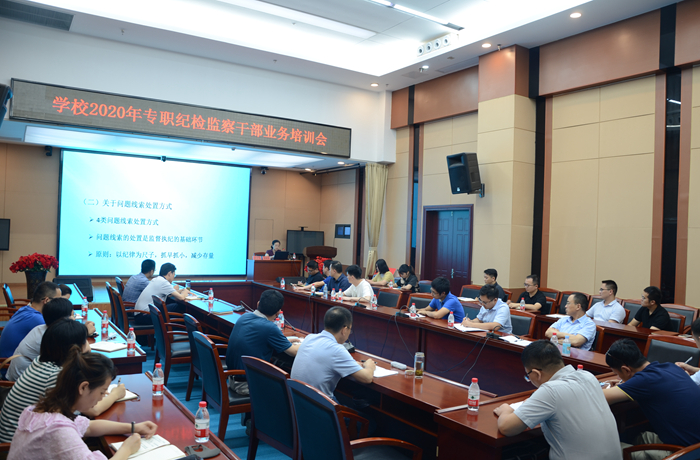 7月30日下午,学校举行2020年专职纪检监察干部业务培训会。校纪委书记、省监委驻我校监察专员黄新美出席会议并为与会人员作专题辅导培训。全校专职纪检监察干部30余人参加学习。