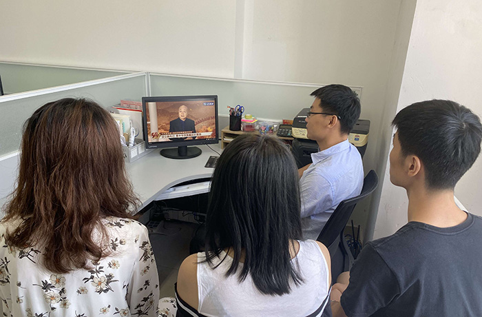 因为有手术安排,第二附属医院整形外科党支部书记李红红利用手术接台间隙,和同事一起观看直播进行学习。“今天是中国人民抗日战争暨世界反法西斯战争胜利75周年纪念日。身处在和平时代的我们,现在的生活没有硝烟,也无须惊恐周围枪声炮鸣,是因为我们的背后,有一个强大的祖国!是不屈不挠的革命先烈用热血缔造的强大祖国!我们缅怀先辈,致敬那场永不妥协的抗争,中华儿女,勿忘国耻!铭记历史,吾辈,当自强!”