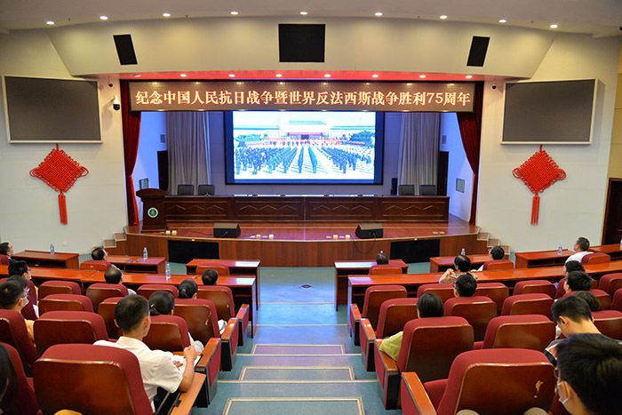 9月3日是中国人民抗日战争暨世界反法西斯战争胜利75周年纪念日。当天上午10时,习近平等党和国家领导人同首都各界代表一起,在中国人民抗日战争纪念馆向抗战烈士敬献花篮。在校校领导曹云霞、刘群英、余永强、肖圣龙、吕雄文、黄新美和全校师生代表150余人怀着崇敬的心情,共同在图书馆第一报告厅观看了向抗战烈士敬献花篮仪式的直播。