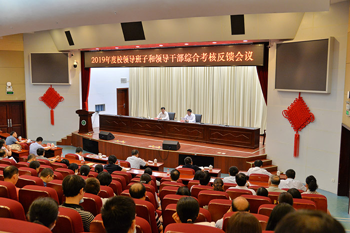 9月15日下午,省委第十五考核组组长、省委教育工委副书记庆承松向我校反馈2019年度省管领导班子和领导干部综合考核情况,并宣布我校领导班子2019年度综合考核为“优秀”等次。这是我校连续第5年考核获“优秀”等次。考核组成员、省委组织部党员电教中心一级科员杜松檑出席会议。校党委书记顾家山主持会议,校领导班子成员参加会议。
