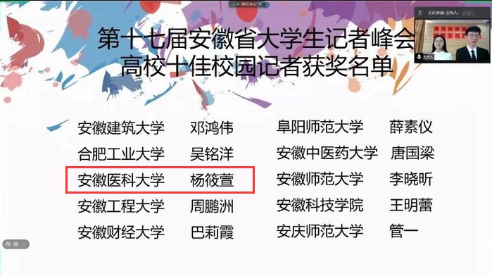 近期,安徽省第十七届大学生记者峰会在合肥学院召开。此次峰会首次采用线上形式,颁发了2020年度安徽省高校十佳校园记者、校园“好新闻奖”及“‘后浪’奔涌,薪火承志”主题征文奖等多个奖项。我校大学生全媒体中心再获佳绩,收获各类奖项共6项。