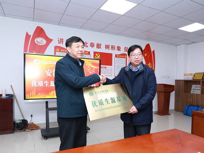 据悉,肥西实验高级中学是肥西县按省级示范中学标准创办的一所高起点、高标准、高质量的完全中学,现有在校生8000余人,教师500余人,是合肥市规模最大的全封闭式管理学校之一。近三年来,该校每年都有40名左右的优秀毕业生被我校录取。此次该校挂牌成为我校优质生源基地,将有力加强两校合作交流,促进协同发展,更好地服务高质量、高素质医学华体会平台,助力广大学子实现“良医”梦想。