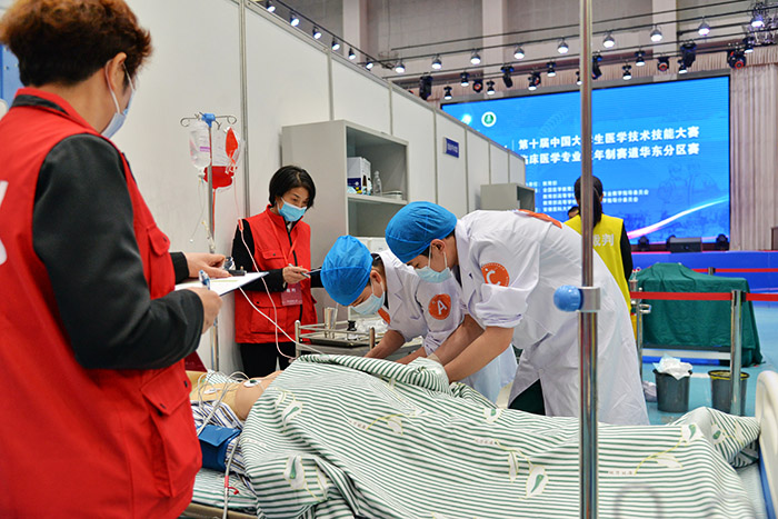 事发突然,这里不是第十届中国大学生医学技术技能大赛临床医学专业五年制赛道华东分区赛的比赛现场,这些训练有素的医学生却是刚刚参加了该项赛事的选手。4月11日,这场堪称医学生的奥林匹克竞赛的华东分区赛,刚刚在我校落幕。