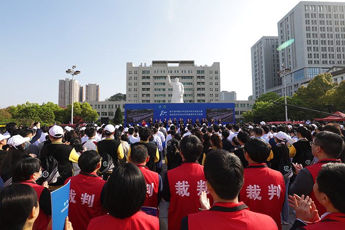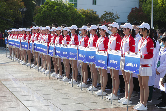 安徽省人民政府副秘书长左俊出席仪式并宣布大赛开幕。大赛总裁判长、中南大学何庆南教授,副裁判长、华中科技大学舒涛教授,大赛纪律监督委员会主任、首都医科大学付丽教授,纪律监督委员会副主任、北京大学刘婧教授,副裁判长、华体会平台范晓晨教授出席开幕式。安徽省教育厅副厅长解平、省卫生健康委副主任高俊文出席开幕式并讲话。校党委书记顾家山致欢迎辞,校长曹云霞主持开幕式,全体在校校领导出席仪式。