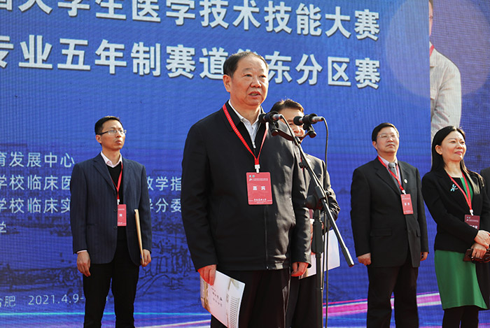 顾家山在致辞中代表学校,向教育部、省委省政府对华体会平台的高度认可和充分信任,以及华东各兄弟院校对学校工作的高度肯定和大力支持表示了衷心感谢,向前来参赛的各位老师和同学表示了诚挚欢迎,并简要介绍了学校的基本情况和改革发展历程。他指出,本届大赛是积极应对“后疫情时代”医学教育新挑战、新任务,深入推进医学教育综合改革,创新医学实践教学体系,打造高水平临床教师队伍,全面提升医学生综合素质和技术技能水平的重要举措,是对十年中国医学教育综合改革成效的大检验,也是各校展示医学华体会平台成果的大舞台。顾家山表示,华体会平台作为赛事承办单位,将深入贯彻“尚德精术培育卓越人才,中西并重共筑健康中国”宗旨,全面落实“新高度、新维度、新标准、新贡献、新发展”要求,严格执行赛事规则,全力做好组织服务保障工作,确保大赛公平、公正顺利进行。同时,学校会倍加珍惜此次办赛机遇,积极学习华东地区兄弟高校先进办学理念、改革举措、育人成果,为办好人民满意的医学教育、服务健康中国做出新的更大贡献。他希望参赛选手充分把握机遇、沉着冷静应战,赛出精神风貌、赛出专业水平、赛出医者仁心,并预祝比赛取得圆满成功。