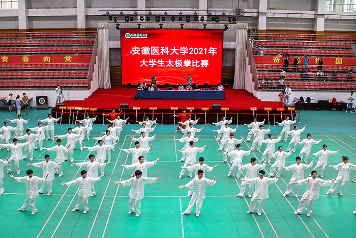 多年来,我校将增强学生体质与弘扬中华优秀传统文化相结合,紧紧围绕“立德树人”的根本任务,把习练太极拳作为学校发展积极心理学、培养学生积极心理品质的重要载体和有效途径,形成了“全民练太极,太极惠师生”的良好氛围以及具有安医特色的太极拳文化品牌。自2020年开始,学校创新性地举办太极拳文化周和辅导员太极拳培训班。