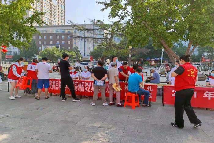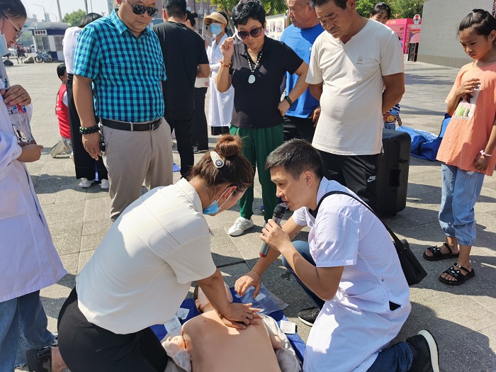 9月11日上午,附属亳州医院十个临床党支部联合亳州市医疗志愿者协会,在亳州市魏武广场开展”世界急救日“义诊宣教活动,以方便群众在家门口学习急救技能,提高面对突发情况时的急救意识和自救互救能力。
