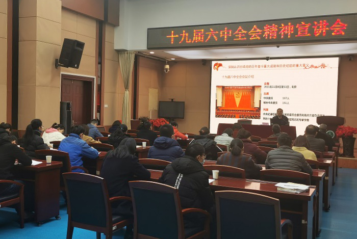 近期,校党委常委、副校长余永强在知行楼一楼会议室,为学校部分单位教职工作了党的十九届六中全会精神专题宣讲报告。