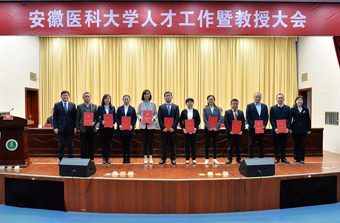 3月4日上午,我校在图书馆第一学术报告厅隆重召开人才工作暨教授大会。会议深入学习贯彻习近平总书记关于人才工作的新理念新战略新举措和中央及省委人才工作会议精神,聚焦国内一流高水平医科大学建设目标任务,按照学校第八次党代会具体要求,总结成绩、分析形势,并就当前和今后一个时期学校人才工作重点任务进行部署。校党委书记顾家山出席会议并讲话,校长曹云霞出席会议并作人才工作报告。校党委副书记刘群英宣读聘任文件,副校长余永强主持会议。副校长梁朝朝、肖圣龙、吕雄文出席会议。