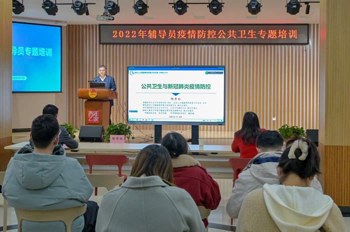 培训会上,学校防疫工作专家组组长、卫生管理学院院长陶芳标教授从传染病和慢性非传染病预防控制、疫情防控下公共卫生知识普及与行动实践三个方面入手,普及了关于常态化疫情防控的最新知识。他指出,公共卫生需从一级预防抓手,从辅导员手头的工作抓起,在当前形势下,学工队伍要主动担当、熟悉政策,从严从紧从细从快落实各项防控举措,毫不放松、慎终如始地做好学生疫情防控工作。