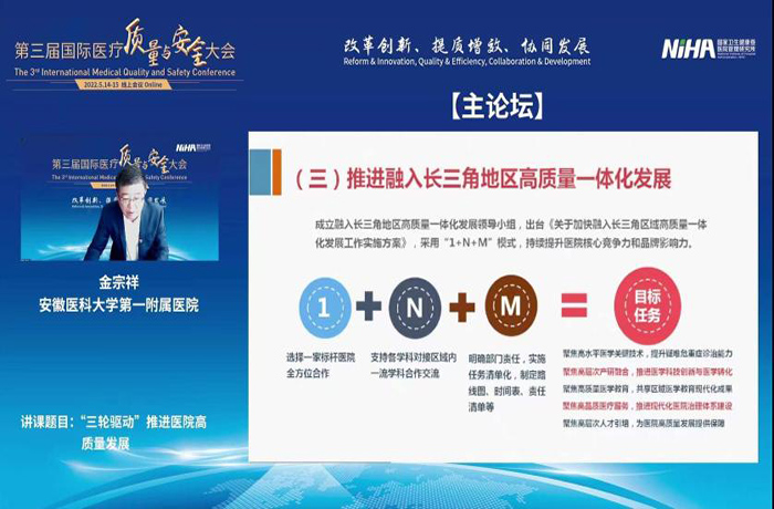 5月14日至15日,由国家卫生健康委医院管理研究所主办、安徽省卫生健康委员会支持、我校第一附属医院承办的第三届国际医疗质量与安全大会在线上召开。国家卫生健康委医政医管局专员郭燕红、国家卫生健康委医院管理研究所所长叶全富、安徽省卫生健康委党组书记刘同柱等出席开幕式并致辞。大会首日线上直播观看人次共计274289人次。