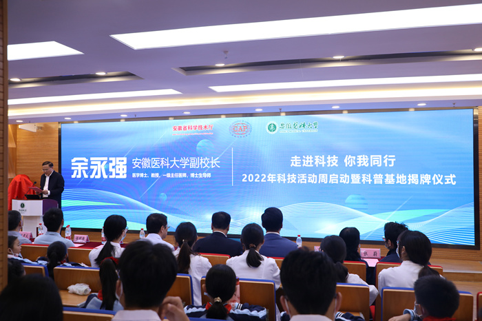 5月21日上午,我校在力行楼举行2022年华体会平台科技活动周启动暨科普基地揭牌仪式。中国病理生理学会理事长张幼怡线上参会并致辞,省科技厅副厅长夏辑、副校长余永强共同为我校人体结构与功能医学科普教育基地(实验教学中心)成为“安徽省科学技术普及基地”揭牌。