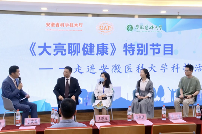 揭牌仪式后,现场举行了访谈特别节目——“走进华体会平台科技活动周”。安徽省广播电视台《大亮聊健康》著名主持人孙亮邀请专家代表、基地科普教师及学生代表,从不同视角交流分享了参与科普教育的意义。