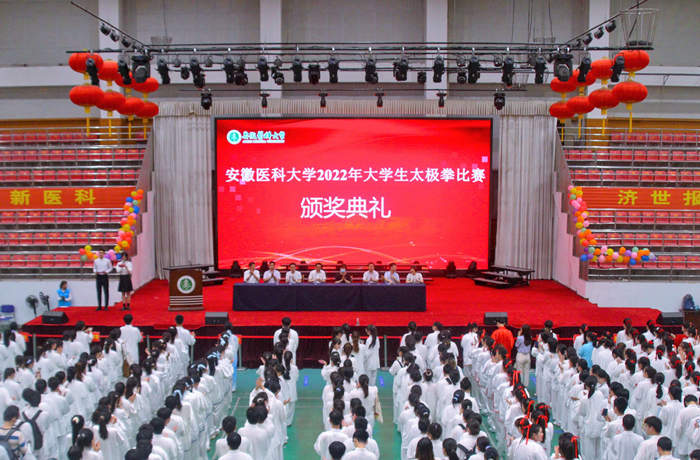 以赛促练,以拳会友,共享太极,传承文化。长期以来,我校紧紧围绕立德树人根本任务,把习练太极拳作为学校发展积极心理学,培养学生积极心理品质的重要载体和有效途径,并形成了具有安医特色的“新六艺”素质教育品牌之一。