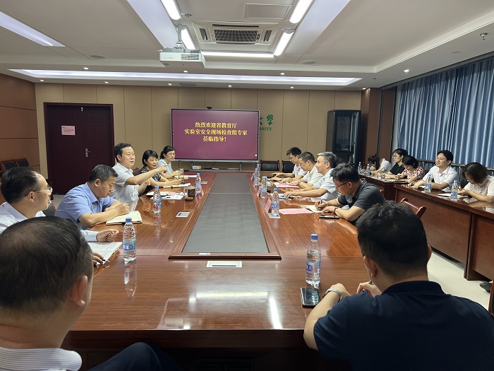 6月23日,省教育厅实验室安全现场检查第三工作组来校检查指导实验室安全管理工作,副校长梁朝朝主持召开迎检工作会。