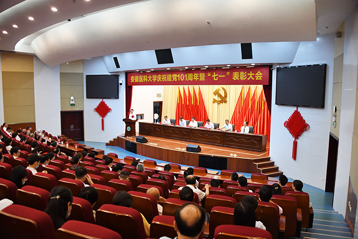 会上,顾家山代表学校党委,向受到表彰的先进集体和先进个人表示祝贺,向辛勤工作在学校各个岗位上的共产党员致以节日的问候。他回顾了中国共产党101年的光辉历程,以及一代代安医大人为教育和卫生健康事业所作出的积极贡献,强调全校党员干部要永远传承红色基因、赓续红色血脉,弘扬内迁精神、安医精神,坚持医教并举,奋力扛起“为党育人、为国育才”“守护人民生命安全和身体健康”的双重使命。