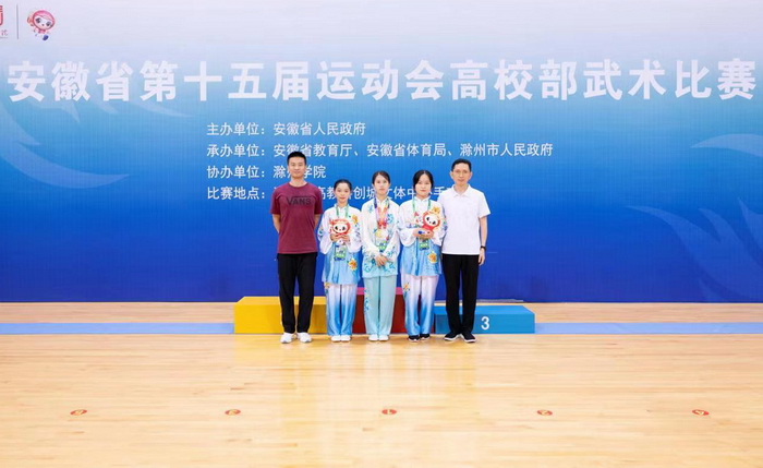 7月26日至29日,由安徽省人民政府主办,安徽省教育厅、安徽省体育局及滁州市人民政府承办的安徽省第十五届运动会高校部武术比赛在滁州市高教科创城文体中心举行,我校2021级公共卫生学院博士研究生滕玉竹同学在比赛中发挥出色,技压群芳,斩获女子太极剑冠军。
