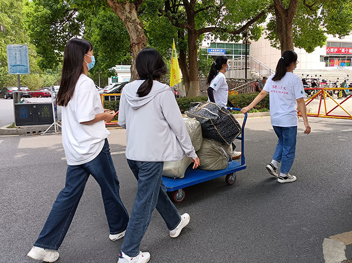 为做好既有“力度”又有“温度”的报到工作,学校组织了大量志愿者帮助新生搬运李物品,并通过发放“开学第一餐”补助,提供防疫物资包、矿泉水,开辟新生缴费绿色通道、家庭困难研究生新生前置帮扶等多项暖心举措,让研究生新生切实感受到常态化疫情防控期间来自学校的温暖。