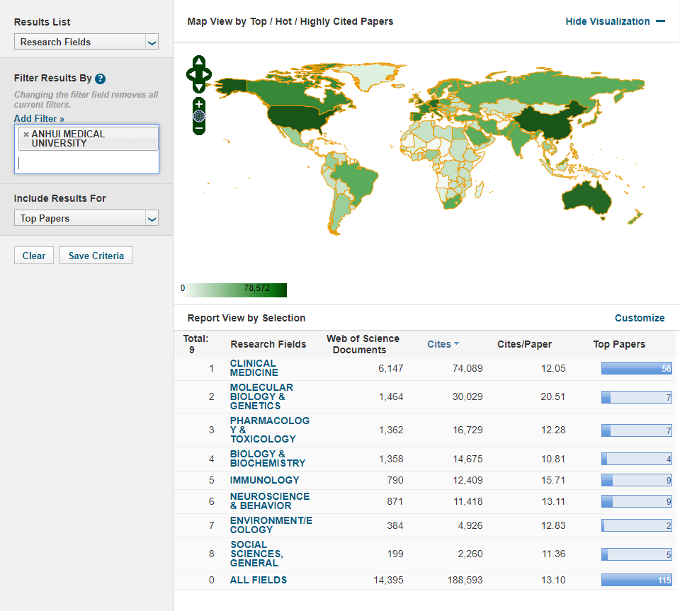 9月8日,科睿唯安公布ESI最新统计数据,我校“环境科学与生态学”(Environment/Ecology)学科首次进入ESI全球排名前1%,这是我校环境科学与生态学相关学科发展取得的重大突破。至此,学校已有临床医学、分子生物学与遗传学、药理学与毒理学、生物与生物化学、免疫学、神经科学与行为学、环境科学与生态学、社会科学总论共8个ESI全球排名前1%学科,在全省高校中位列第二(与合肥工业大学并列),在省属高校中位列第一。