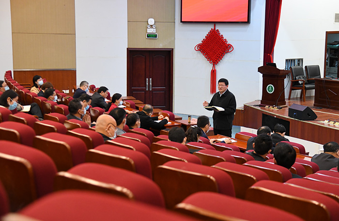 11月1日上午,校党委书记顾家山在校图书馆第一学术报告厅,带头向学校中层干部宣讲党的二十大精神,并就我校学习贯彻党的二十大精神作进一步部署。他强调,要深刻领悟“两个确立”的决定性意义,增强“四个意识”、坚定“四个自信”、做到“两个维护”,把学习宣传贯彻党的二十大精神作为当前和今后一个时期的首要政治任务,自觉把思想和行动统一到党的二十大精神上来,坚决把党中央、省委和省委教育工委决策部署落到实处。校党委副书记谢瑞瑾出席会议。