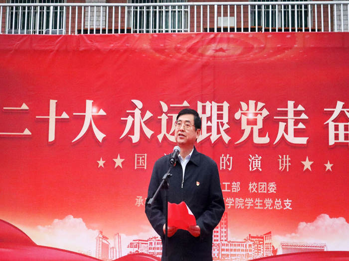 11月14日清晨,学校“学习二十大,永远跟党走,奋进新征程”——“国旗下的演讲”系列主题教育活动暨党的二十大精神宣讲在校本部操场举行。校党委副书记谢瑞瑾出席仪式,并在国旗下宣讲党的二十大精神。