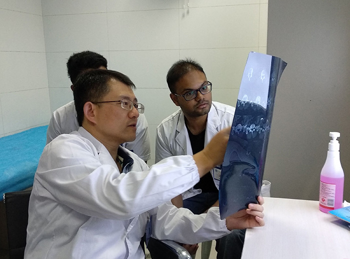 医学行业的特殊性,决定了不论是医学生自己学习还是对其的培养,都要付出更多的努力。已在我校从事教学工作十余年的董福龙,一直默默耕耘在一线,承担了外科学、骨科学、运动系统损伤与疾病等多门主干课程的理论授课。近3年,他承担的理论教学100余课时,授课专业涵盖了临床医学各个专业以及来华留学生本科教育临床医学(英语授课)专业。