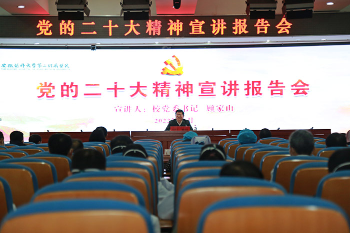 11月30日下午,校党委书记顾家山前往第二附属医院,为该院党员干部、师生医护员工宣讲党的二十大精神,并就深入学习贯彻党的二十大精神,学懂弄通习近平新时代中国特色社会主义思想,推动学校和医院事业高质量发展提出具体要求。
