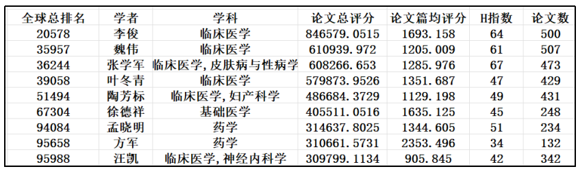 本次排名是依照学者科研产出、Google Scholar Metrics 期刊评分、H指数、成果被引、成果中作者排序位置等参数综合考虑的结果。平均分高表明学者更倾向于在高质量期刊发表文献,综合评分则更多考虑学者的产出量。按照总积分从高到低排列出全球前10万名学者,共有8029位国内学者入围该名单。