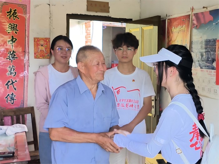 实践团感受红色文脉,不忘薪火相传,参观毛主席视察舒茶纪念馆,沿着伟人的足迹重温视察场景,学习了解舒茶镇这几十年的发展历程。实践团还走访慰问了镇上光荣在党五十年的老党员、抗美援朝老兵,聆听老兵讲述战争中浴血奋战、艰苦奋斗的英勇事迹,体悟如今美好生活的来之不易。