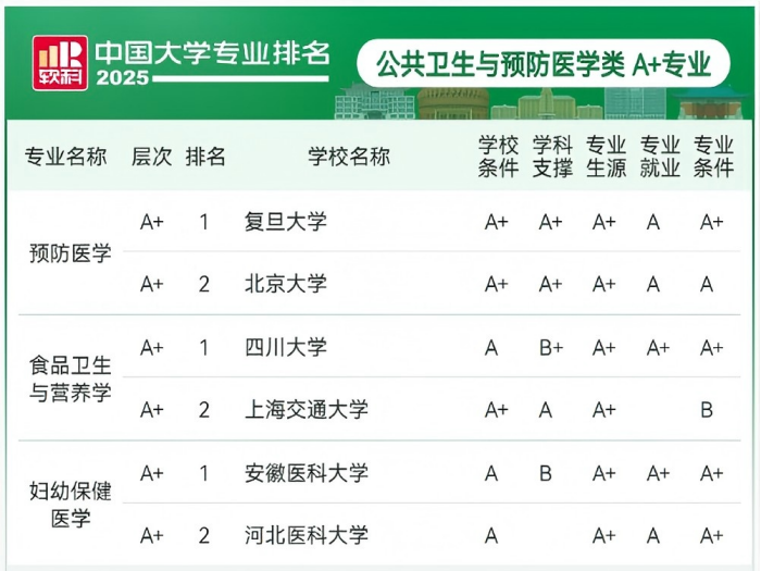 我校妇幼保健医学专业始终致力于培养高素质专业人才,推动妇幼健康事业发展。此次排名再次彰显了我校在该领域的领先地位和卓越实力,印证了学科的综合实力和社会影响力。该学科未来将继续发挥示范引领作用,为健康中国建设贡献力量。(公共卫生学院)