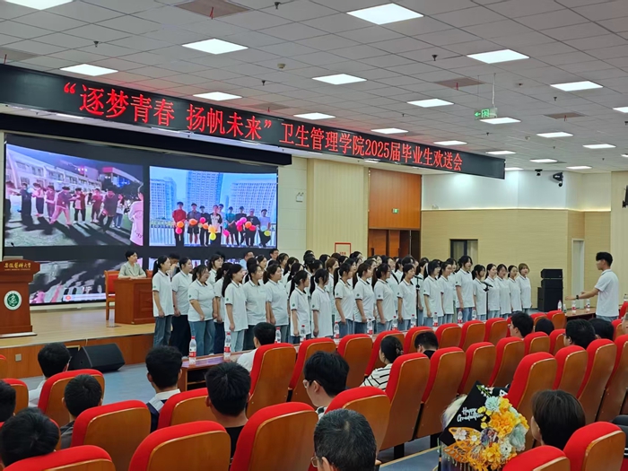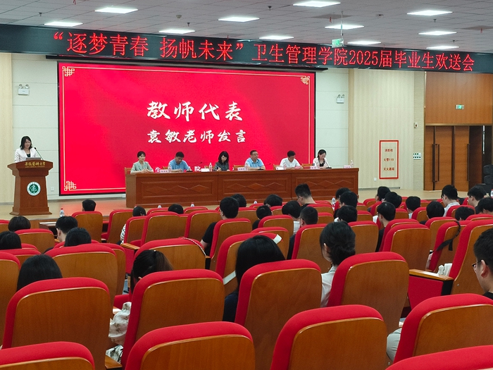 6月24日上午,卫生管理学院在铜陵路校区举行以“逐梦青春,扬帆未来”为主题的2025届毕业生欢送会,为即将启航的毕业生送上美好祝愿与深情寄语。副校长洪静芳出席活动,与学院领导一同为毕业生代表颁发精心准备的纪念品,为毕业生们送上诚挚祝福。