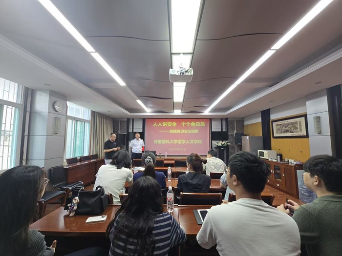 6月24日下午,医学人文学院联合校保卫处共同组织开展消防安全知识培训及实践演练活动,院长黄晓晖主持活动。