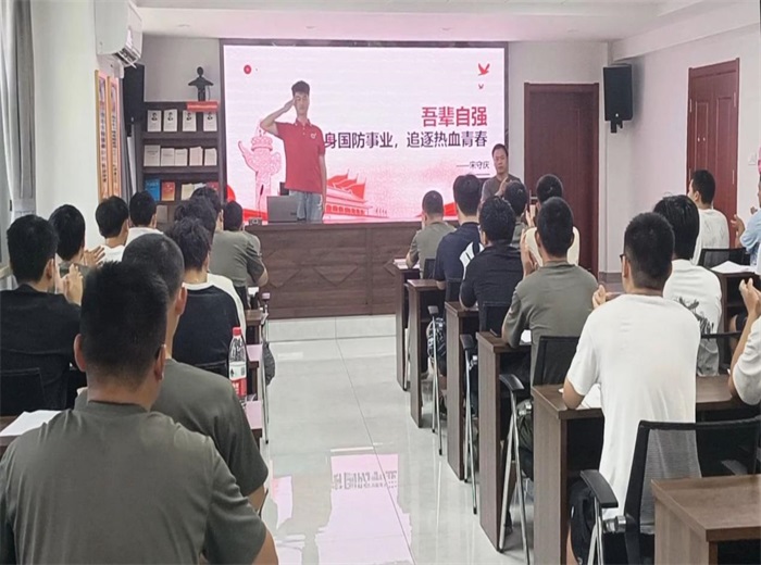 迷彩青春酬壮志,热血宣讲振奋人心。在梅山镇武装部会议室内,一场别开生面的征兵宣讲会正火热进行。退役大学生士兵宋守庆、包佳豪担任主讲,以“过来人”的身份,为在场青年学子点燃从军报国的激情。宋守庆以“献身国防事业,追逐热血青春”为题,通过一张张真实的军营照片,生动展示了自己从一名准大一学子到中国人民解放军仪仗司礼大队“四有”优秀士兵的成长轨迹。包佳豪则带来“我的迷彩青春”主题分享,以幽默风趣的语言讲述战术训练、野外驻训等军营生活细节,并现场示范整理内务、队列动作等军营基本功。两位实践团成员结合亲身经历,系统解读入伍政策、军营生活细节与发展路径,现场解答青年关于部队训练、学业衔接等实际问题,有效强化了适龄青年携笔从戎的决心。